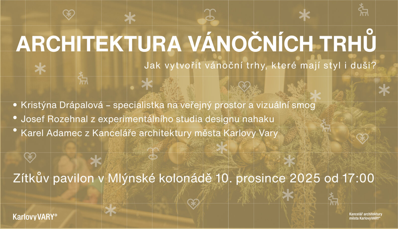 KAM KV° Vás srdečně zve na předvánoční setkání při neformální diskuzi věnované tématu, které utváří atmosféru našeho města každou zimu – architektuře vánočních trhů.